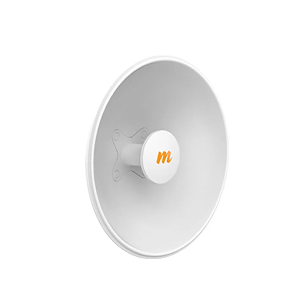Antena direccional de 25 dBi diseñada para enlaces punto a punto de mayor alcance. Es enroscable y compatible solo con la radio C5x. Su tamaño de 400mm y mayor ganancia permiten una conexión más potente y estable.