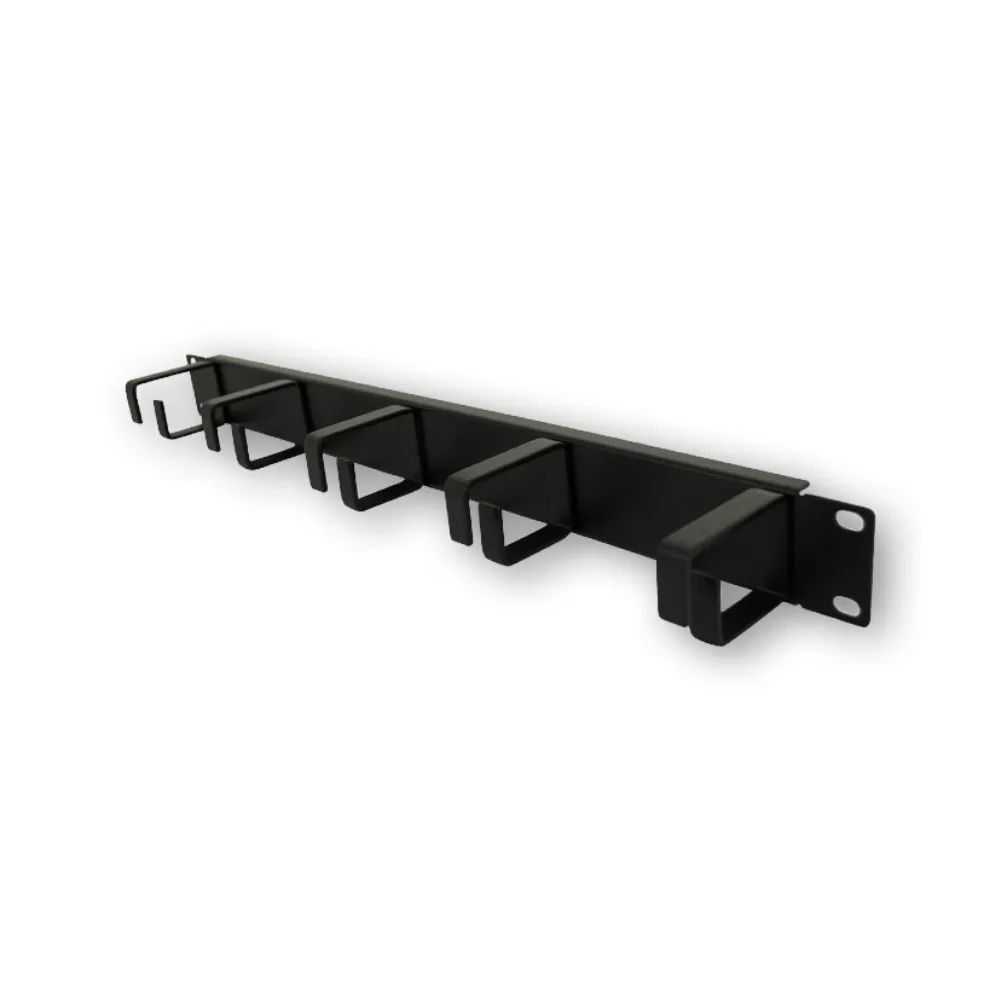 Organizador de cables para rack de 1U, facilita la gestión de cableado.
